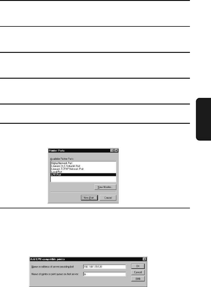 The Printer Ports window will show a list of the available ports. Select LPR