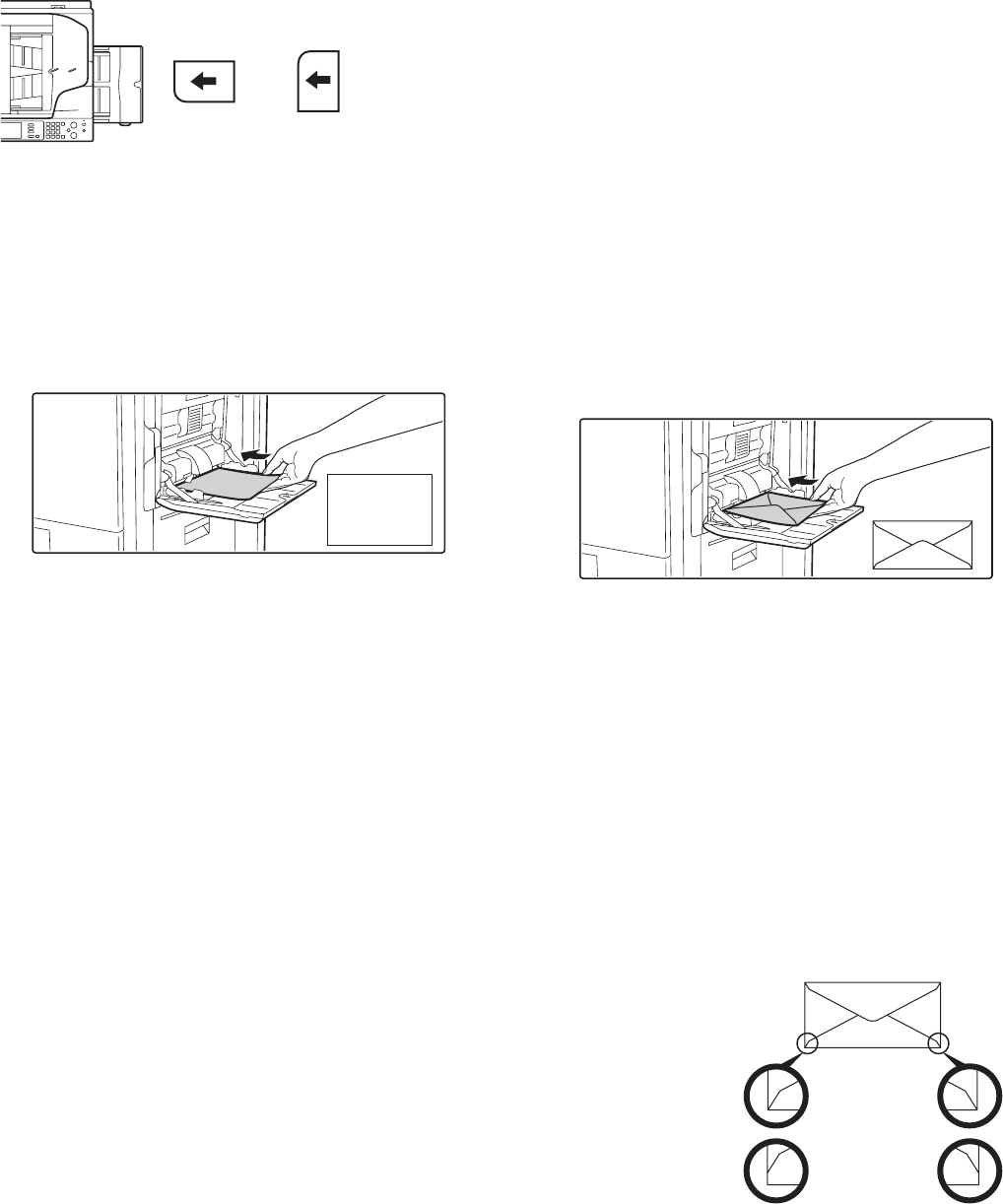When inserting envelopes or postcards in the bypass tray, set them in the orientation shown below.