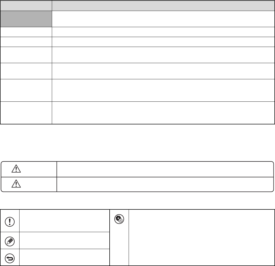 The icons in the manuals indicate the following types of information: