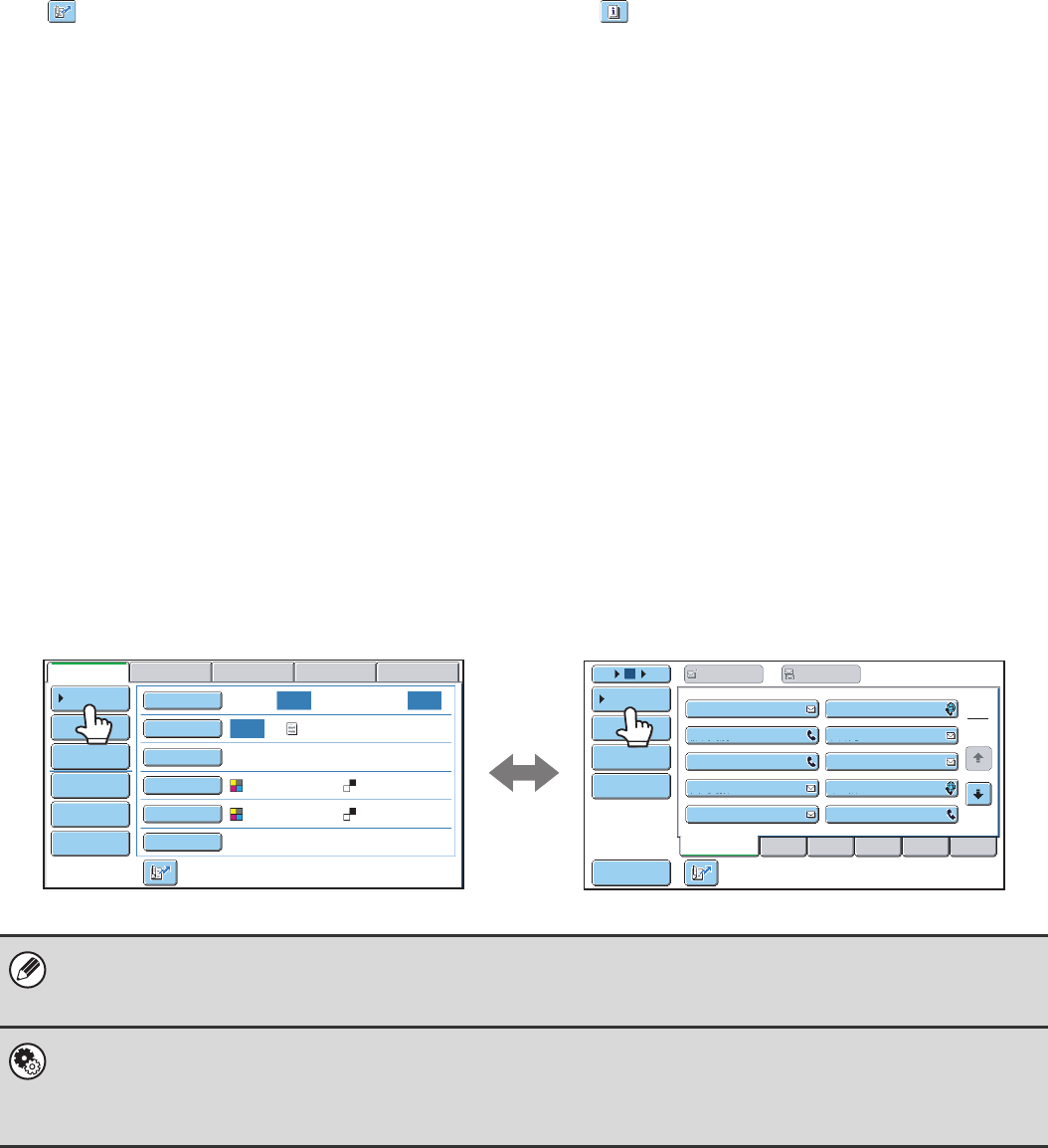 • Base screen of each mode (scan, Internet fax, fax, or data entry mode)