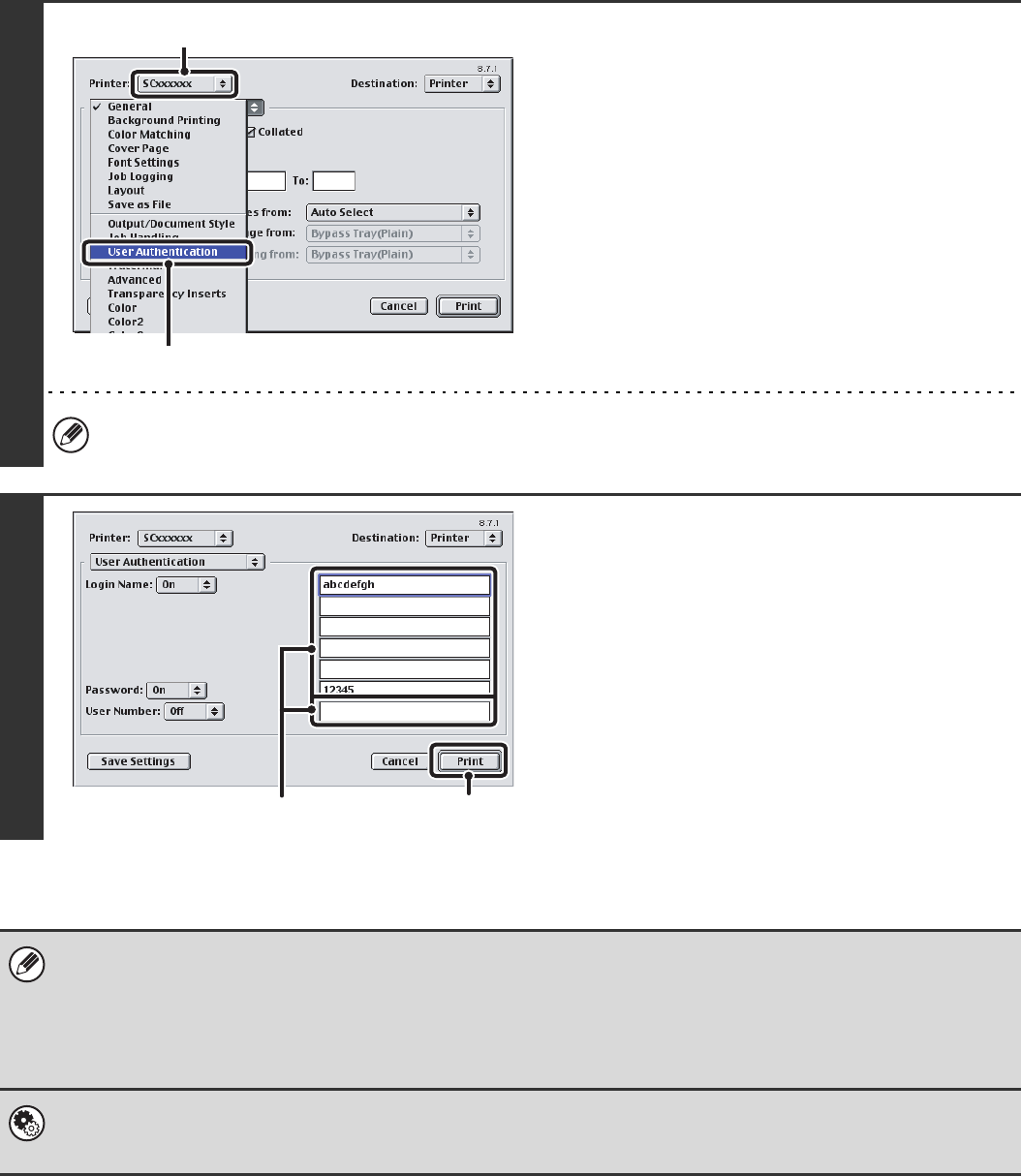 • Normally printing is possible without entering your user information. (In this case, the printed pages will be added to the