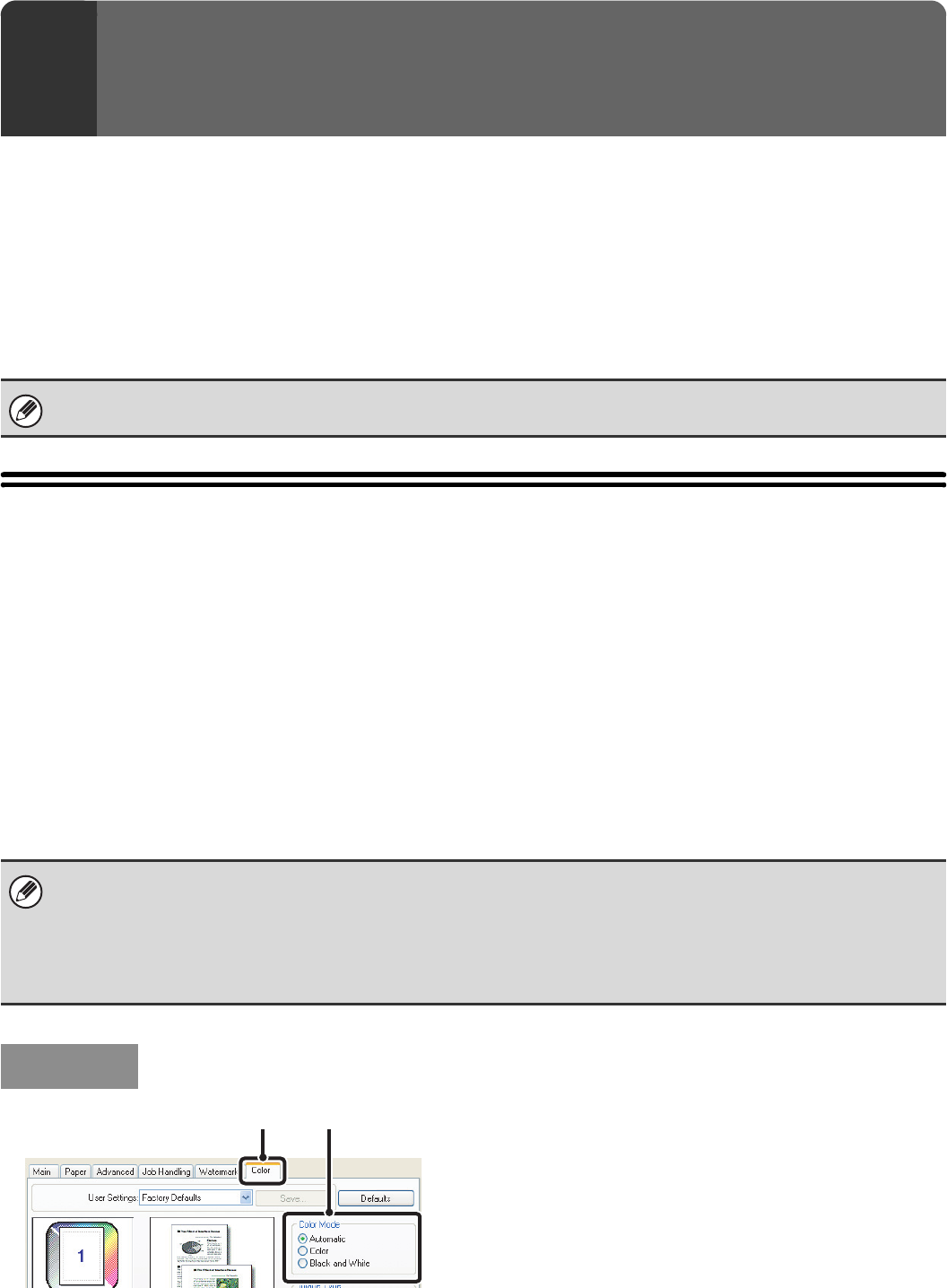This section explains how to select the color mode in the printer driver properties window. The following three selections