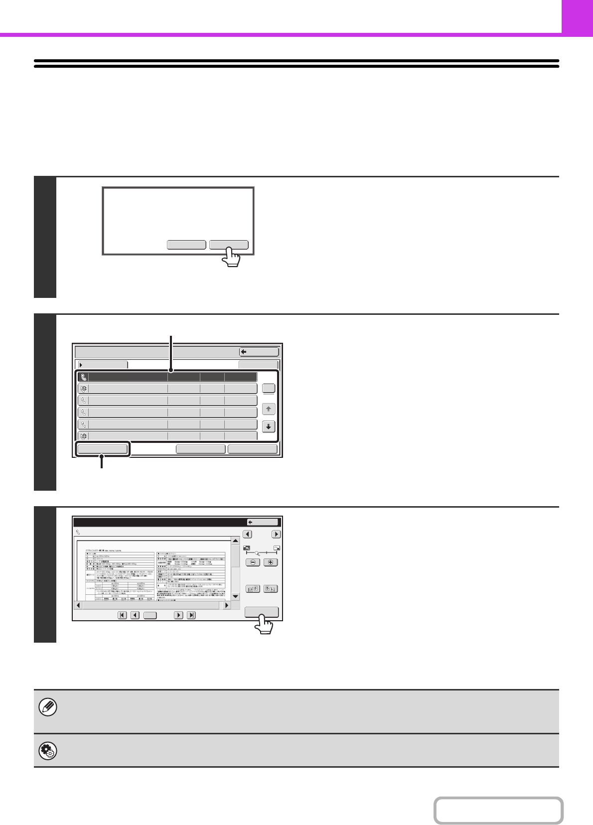 received image in the touch panel before printing it out. When this function is enabled, follow the steps below to print a