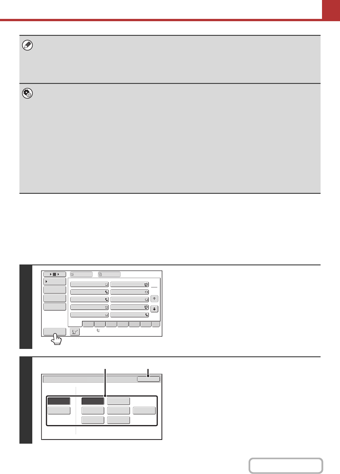 - Address type (all, group, E-mail, FTP/Desktop, Network Folder, Internet fax, fax)