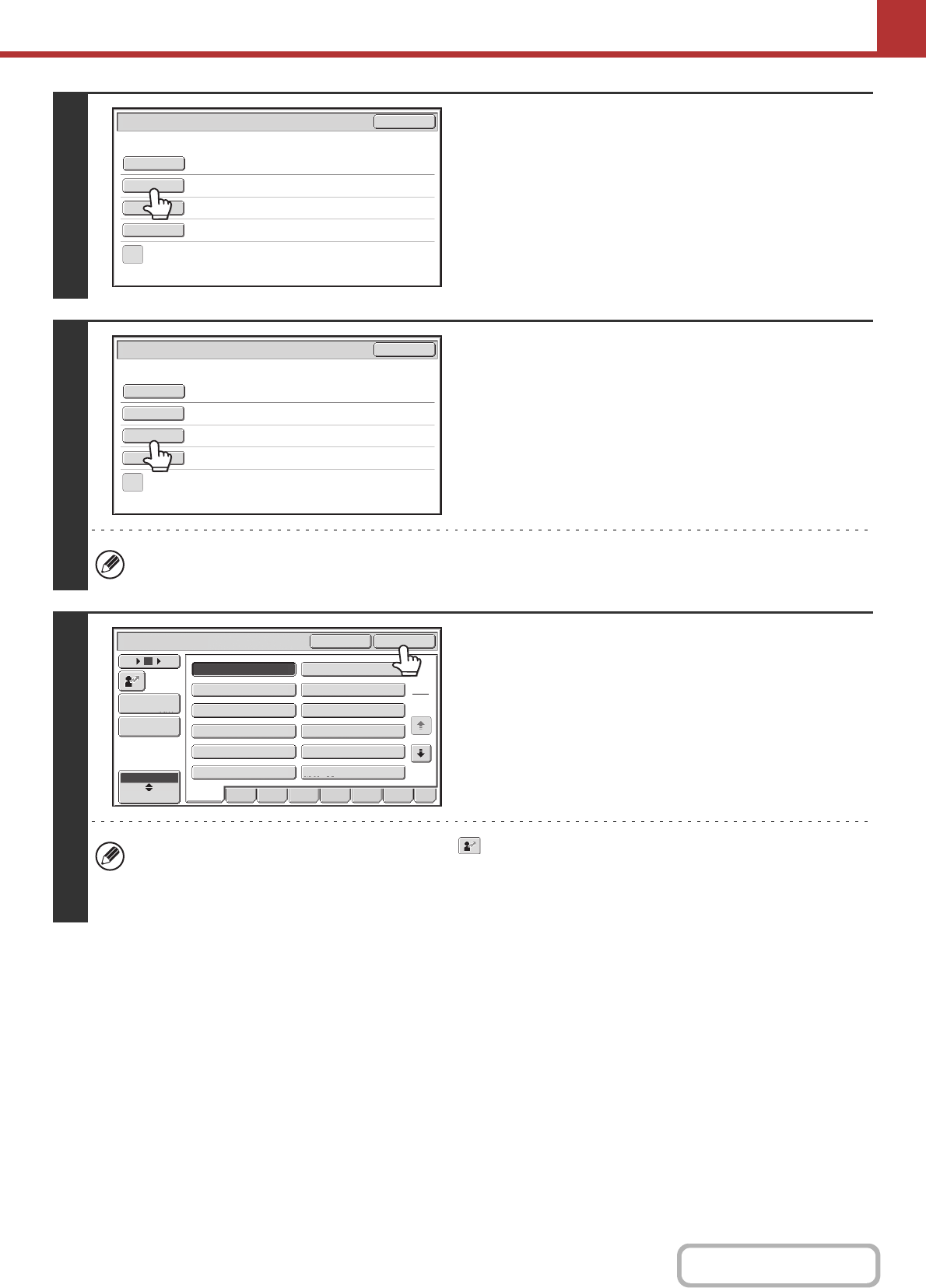 • To specify the return address, you can touch the key and enter a user number that has been previously stored