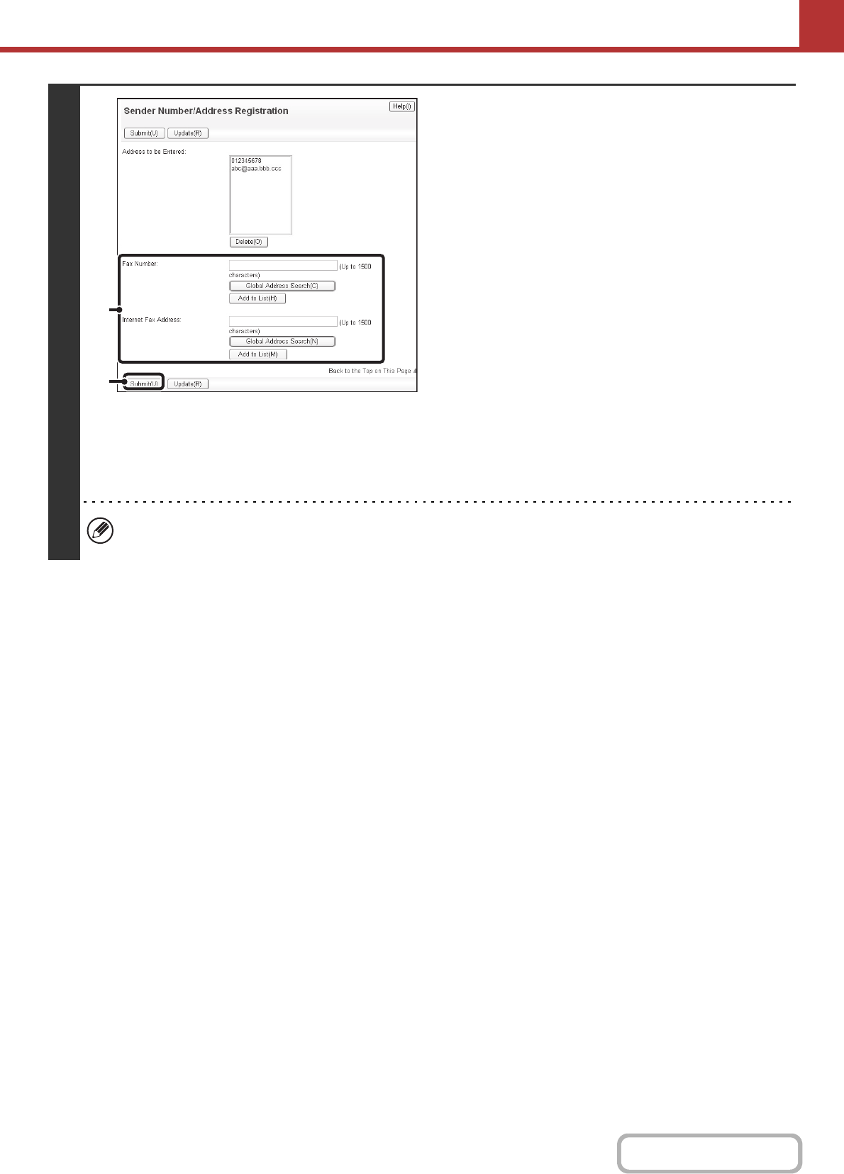 (1) Click [Sender Number/Address