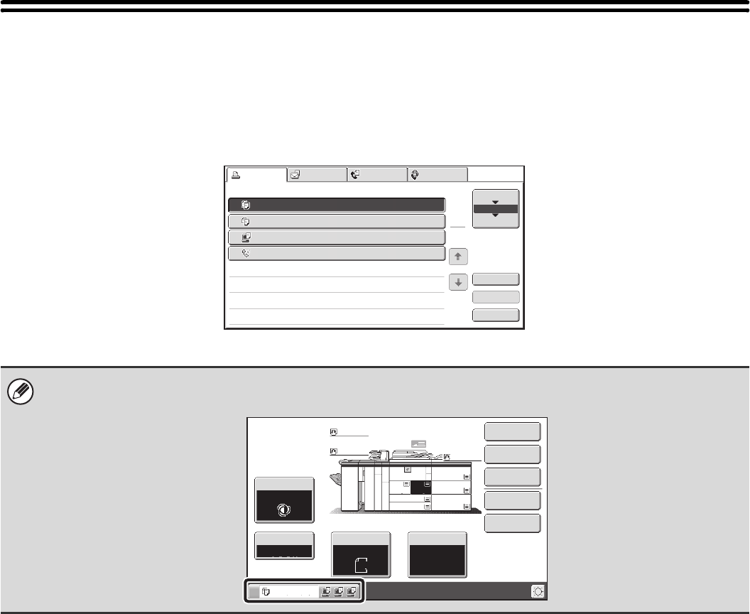 screen shows the status of jobs by mode. When the [JOB STATUS] key is pressed, the job status screen of the mode