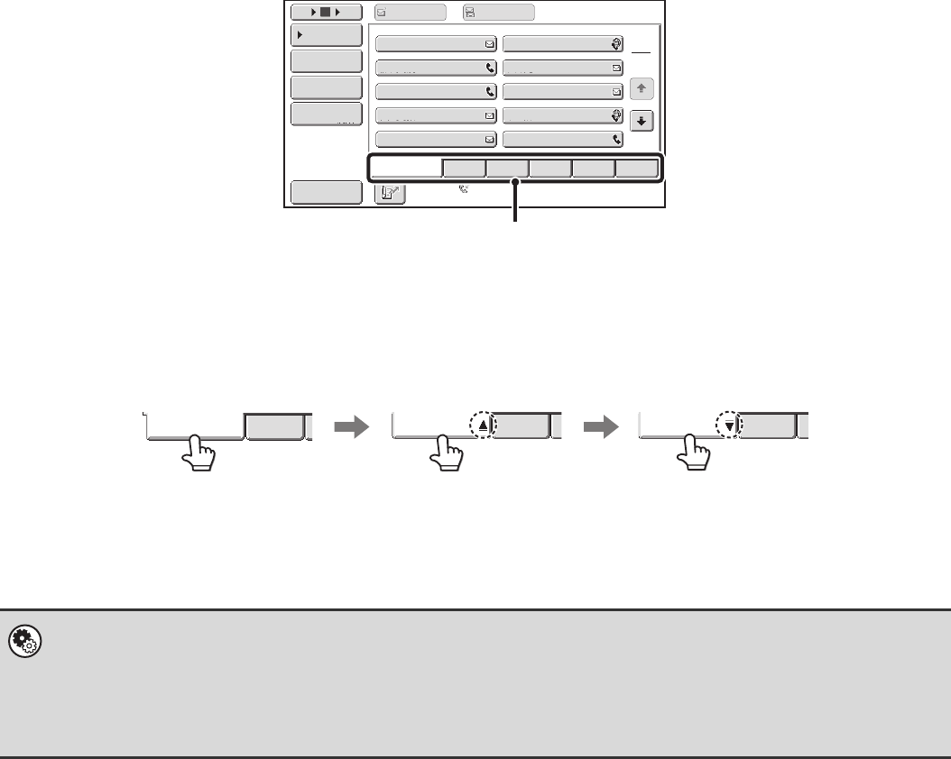 Each time the displayed index tab is touched, the display order changes in the following order: search numbers (page