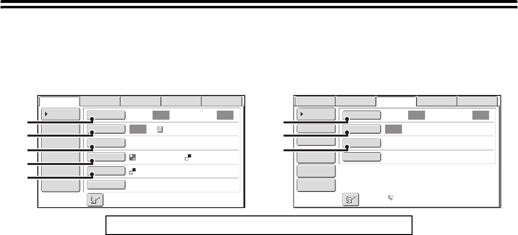 Settings for scanning the original are selected in the base screen of each mode. The current state of each setting