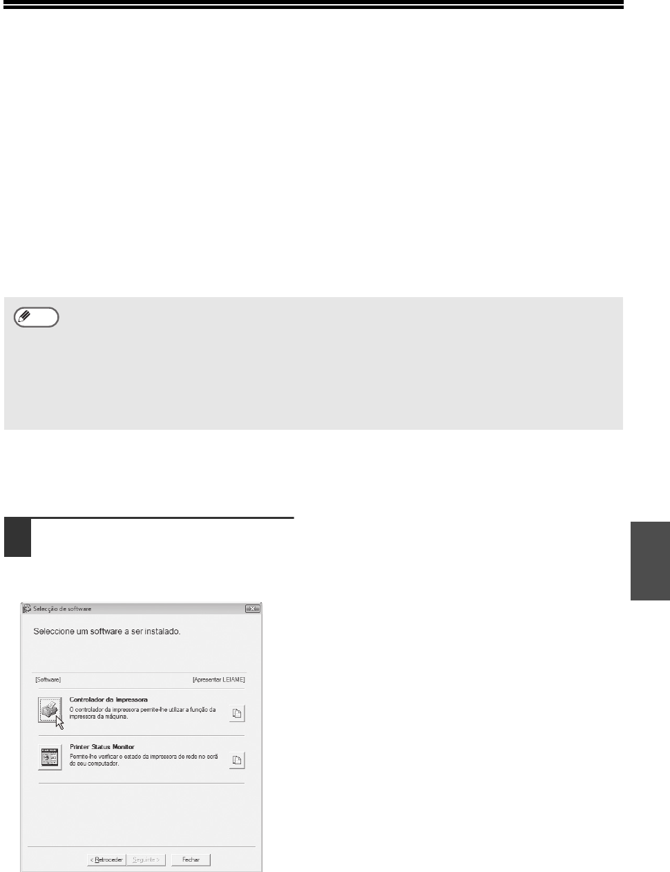 • O processo de instalação nesta secção refere-se ao controlador de impressora e ao controlador