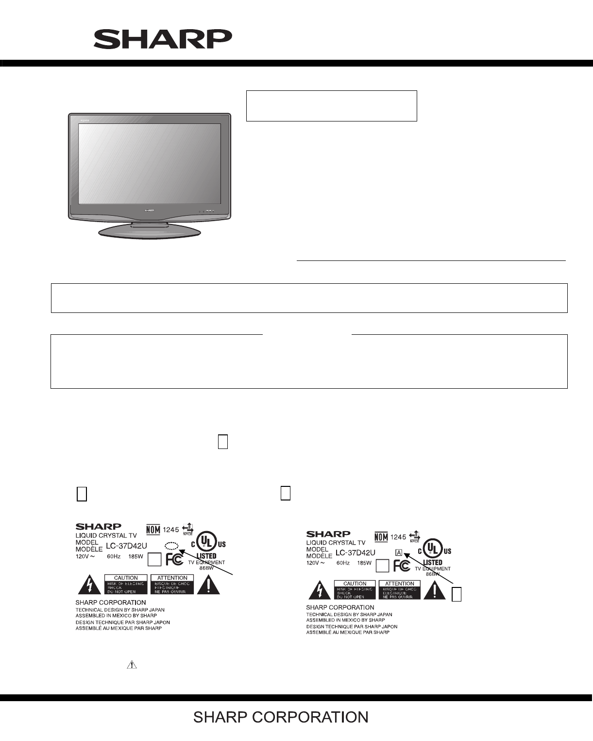 LC-37D42U/LC-37D43U/LC-C3742UCOPYRIGHT © 2007 BY SHARP CORPORATIONALL RIGHTS RESERVED.No Part of this publication may be reproduced,stored in a retrie