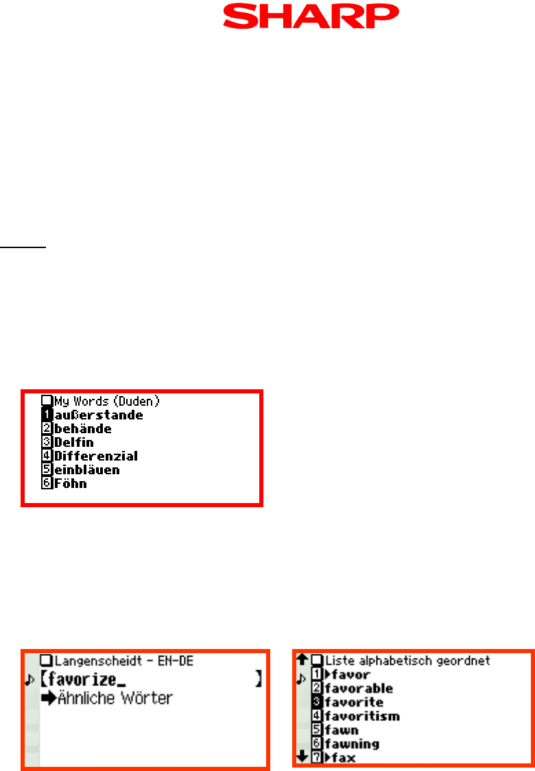 Wörterbuches enthalten, wird eine Liste mit Stichwörtern angezeigt – aus den