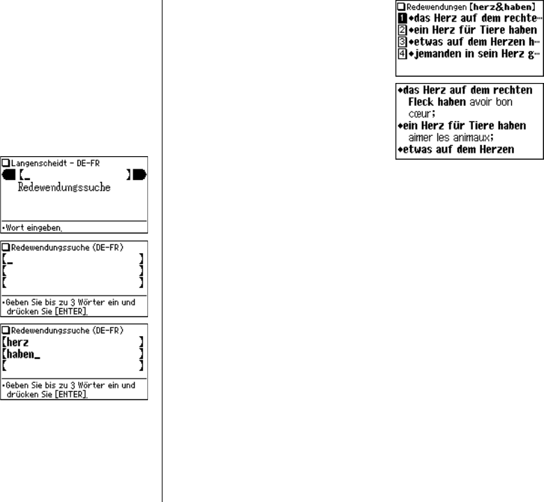 drei untereinanderliegenden Eingabefelder ein. Es wird nach Redewendungen