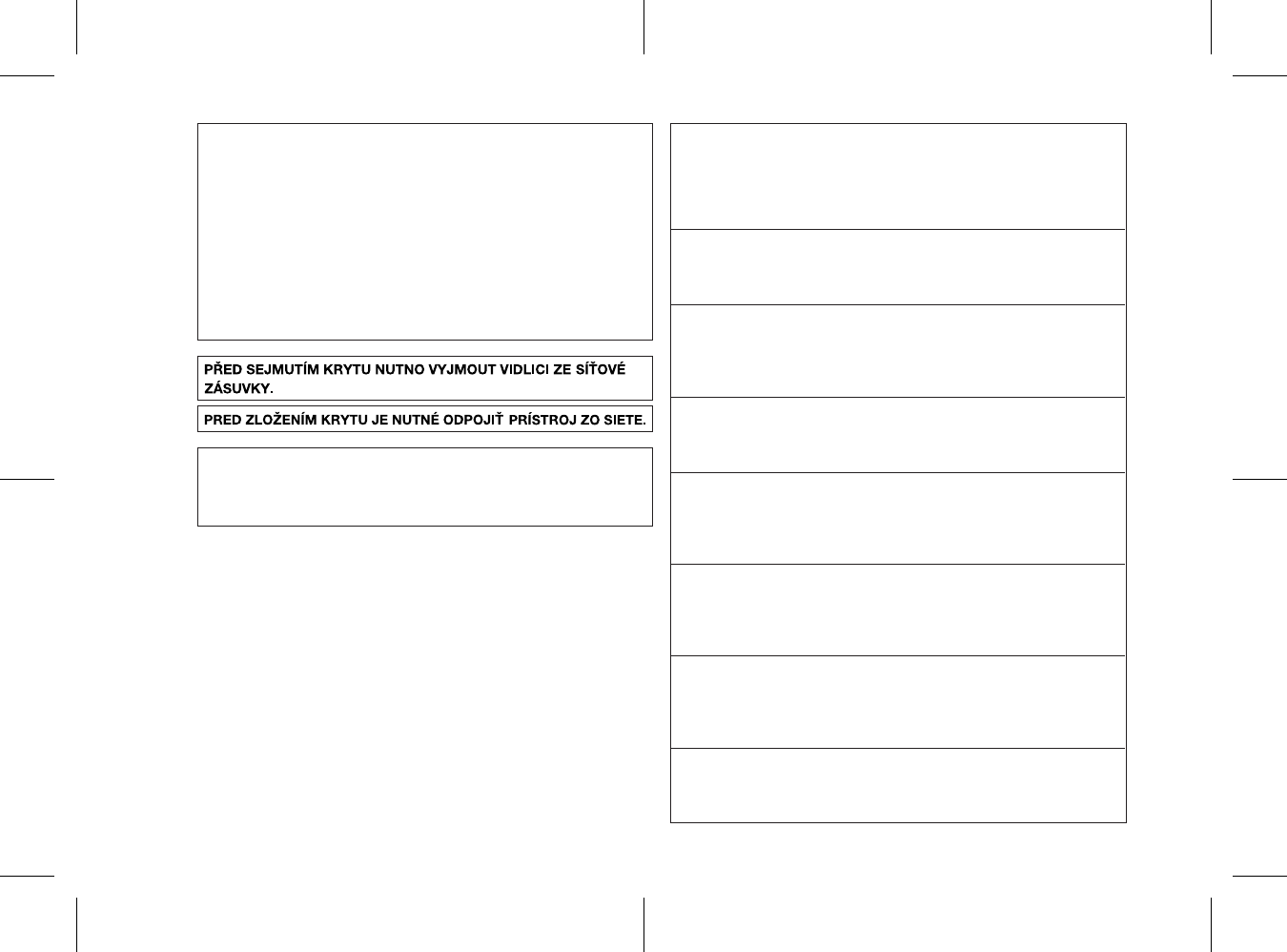 brand eller elektriska stötar. Inga vätskefyllda föremål