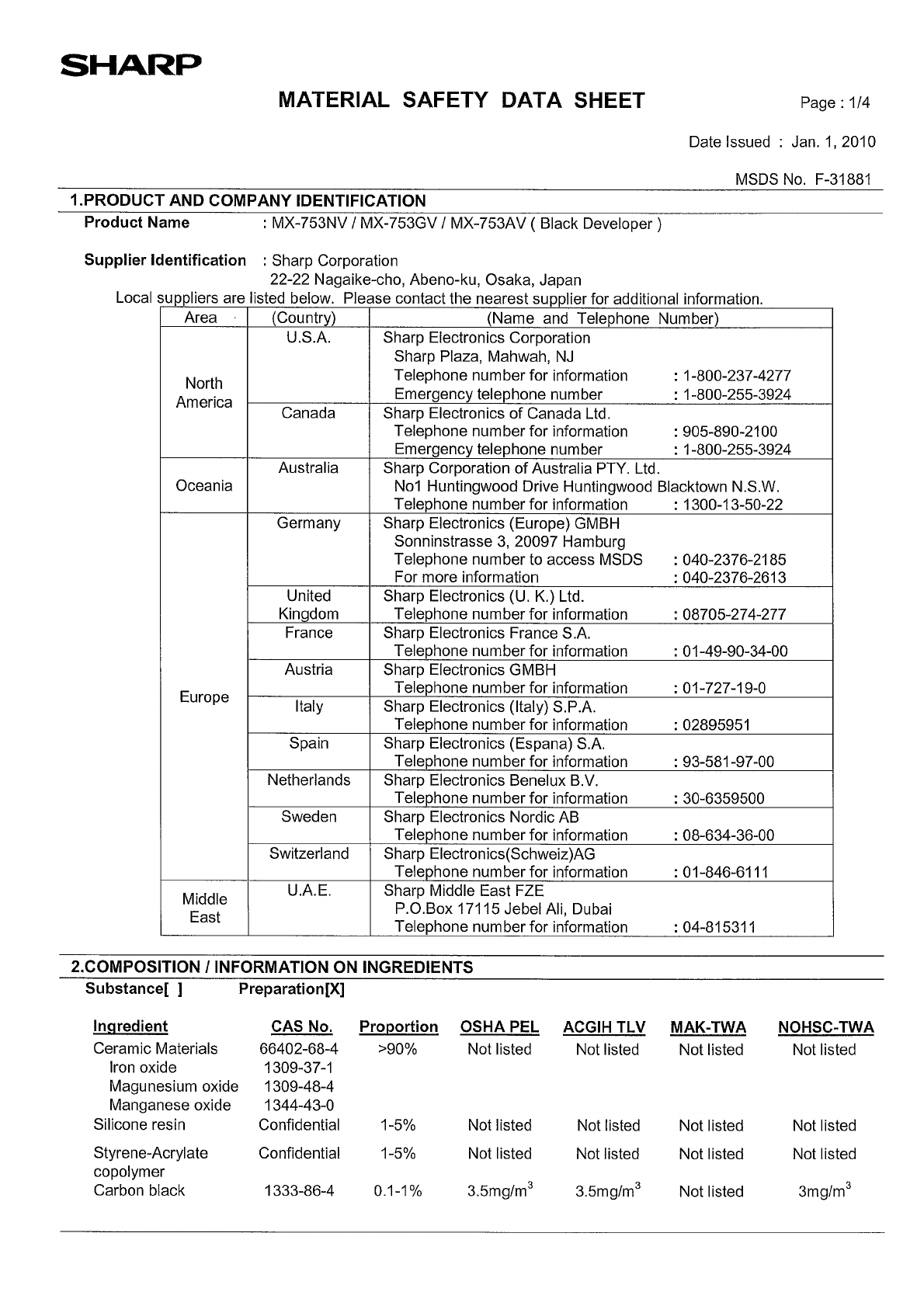 Browse online or download User Manual for Unknown Sharp MX-M753. Sharp MX-M753 MSDS