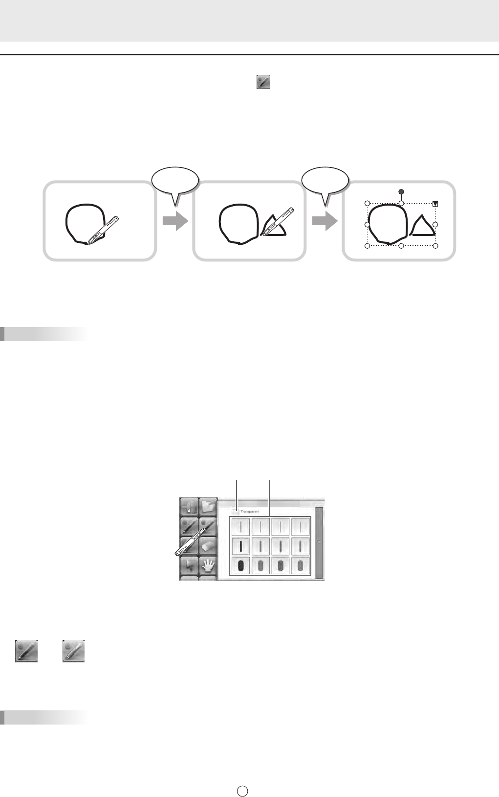 • Vous pouvez commuter entre “Pen 1” à “Pen 3” et “Eraser” en exerçant des pressions répétées sur la touche de fonction 2