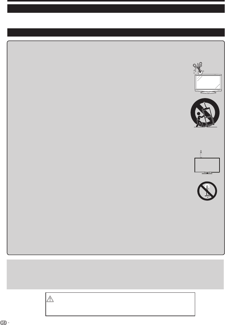 • To prevent fire, never place any type of candle or naked flames on the top or near the TV set.