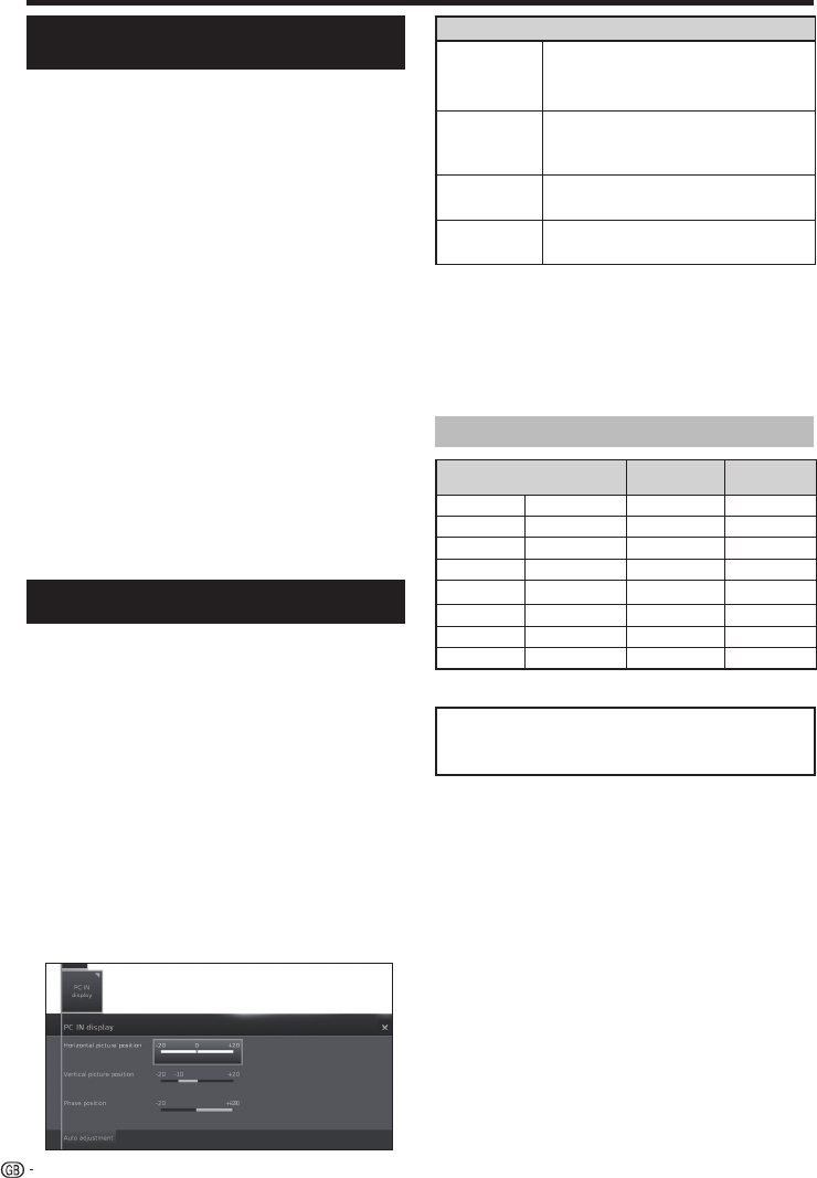 • The “PC IN display” options in the “Picture” menu can be